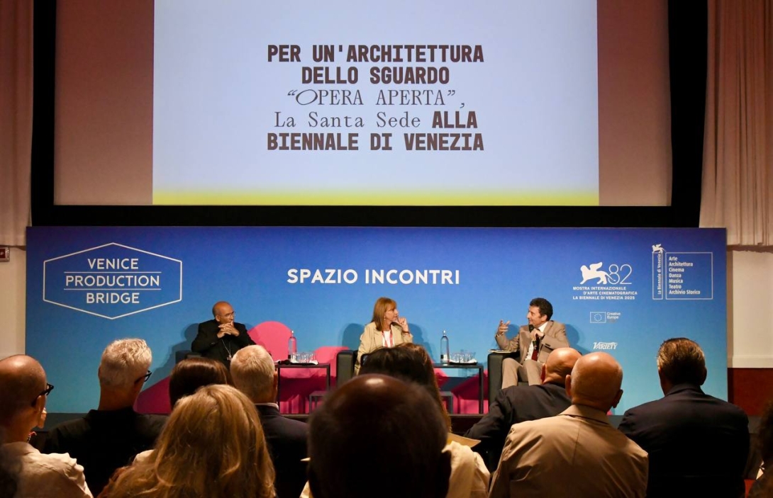 Durante l’incontro, moderato dalla giornalista Elisabetta Soglio, il pubblico è stato guidato in un percorso di diversi linguaggi artistici, susseguiti dagli interventi del Cardinale José Tolentino de Mendonça, Prefetto del Dicastero per la Cultura e l’Educazione della Santa Sede; di Pietrangelo Buttafuoco, presidente della Biennale di Venezia; di Alberto Barbera, direttore artistico della Mostra Internazionale d'Arte Cinematografica della Biennale di Venezia; di Ila Bȇka e di Louise Lemoine; infine di Giovanna Zabotti e di Marina Otero Verzier, curatrici del Padiglione della Santa Sede alla Biennale di Architettura. Presente, tra gli altri, anche il prefetto di Venezia, Darco Pellos.
