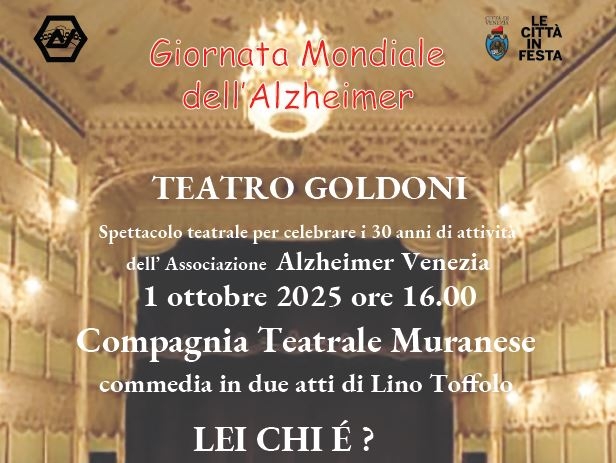 Il Progetto Sollievo viene realizzato con l’apporto dell’Aulss 3 Serenissima, la Regione del Veneto e il Comune di Venezia nelle Isole di Burano Murano Giudecca, nel Centro Storico di Venezia e in terraferma. Le persone ammalate e i loro familiari trovano accoglienza, informazioni e servizi. La finalità principale è quella di modificare progressivamente la sensibilità sul problemi del decadimento cognitivo nelle istituzioni e tra i cittadini tutti. Per portare l’attenzione su un pubblico più ampio questi temi, l’Associazione Alzheimer Venezia e la Compagnia Teatrale Muranese hanno collaborato con il Comune di Venezia - La Città in Festa per proporre, in occasione della Giornata Mondiale dell’Alzheimer 2025, la replica della commedia “Lei chi è?”, scritta da Lino Toffolo 2006. Lo spettacolo andrà in scena mercoledì 1 ottobre alle ore 16 al Teatro Goldoni di Venezia.